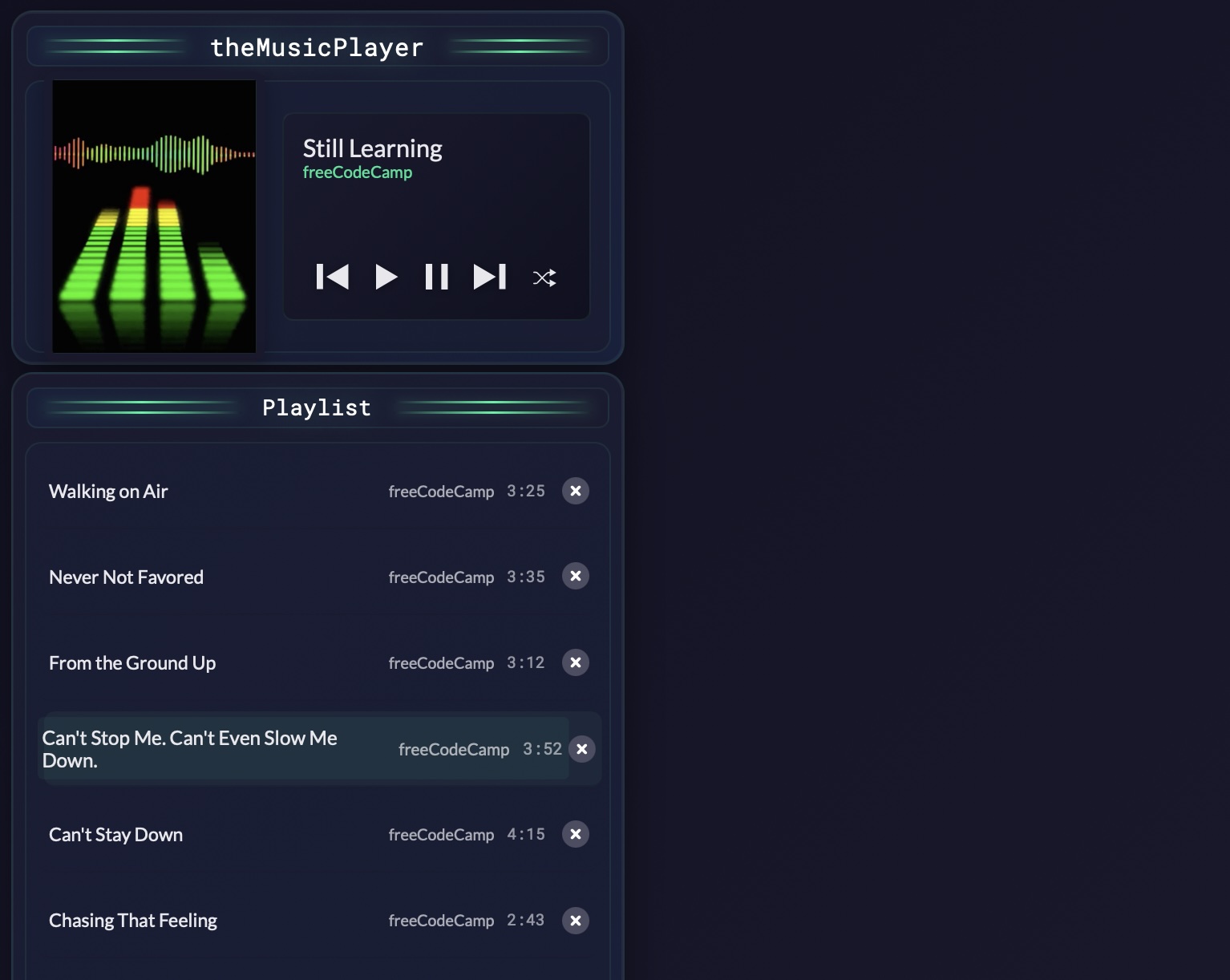 A project with ES6 features like template literals, arrow functions, and optional chaining. It provided an opportunity to enhance my JavaScript skills, incorporating a musical element for added interest. This project was developed as part of an introductory programming course through Free Code Camp.